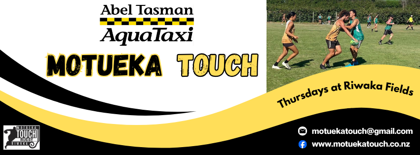 Motueka Kids Touch is played in Term 4 starting on Thursday 15th October at Riwaka Cemetery fields, and Riwaka Clubroom fields if needed.